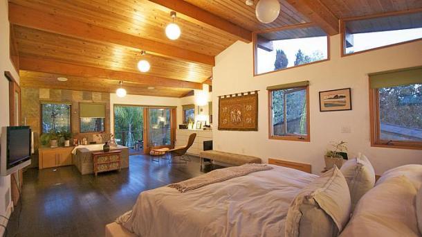 This apartment with nice shades of blue and a beautiful bathroom will help you to relax after work.